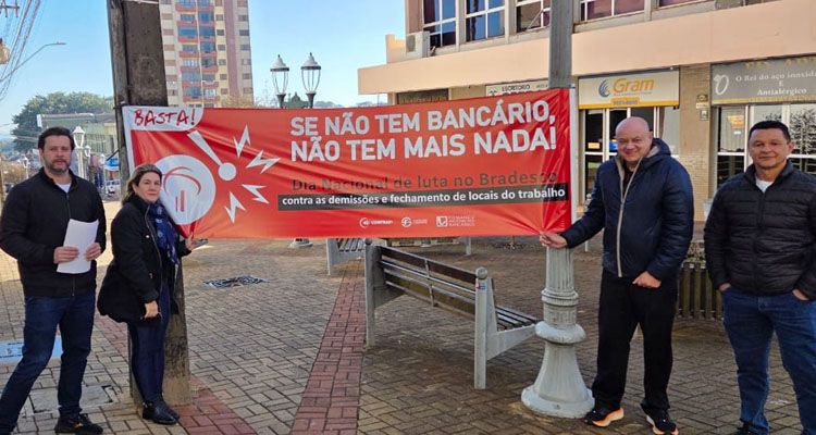 De acordo com o presidente do Sindicato, Johni Oliveira Müller, a agência só abriu as portas ao meio-dia, marcando o Dia Nacional de Luta dos Funcionários do Bradesco. “Tivemos uma conversa com os bancários e bancárias para ressaltar a importância da mobilização em defesa dos empregos no banco, bem como condições adequadas para que os clientes possam fazer suas operações financeiras. É preciso dar um basta nesta ganância dos bancos, que só pensam eu aumentar seus lucros sem se preocupar com as consequências dessa exploração desmedida”, protesta.